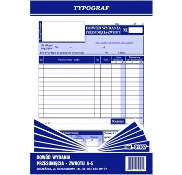 Dowód wydania - przesunięcia - zwrotu Typograf A5