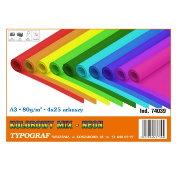 Papier kolorowy ksero Typograf A3 80 g/m2 mix 4 kol. neonowych