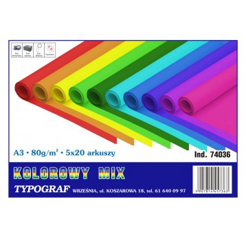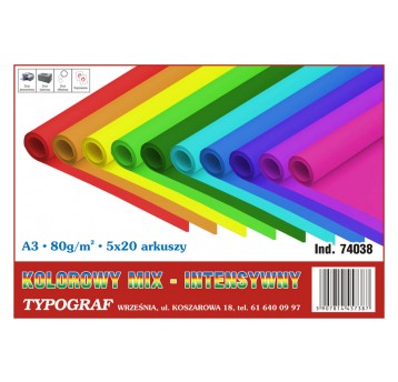 Papier kolorowy ksero Typograf A3 80 g/m2 mix 5 kol. intensywnych