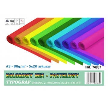 Papier kolorowy ksero Typograf A3 80 g/m2 mix 5 kol. pastelowych