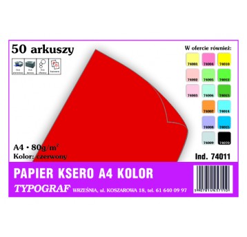 Papier kolorowy ksero Typograf A4 80 g/m2 czerwony