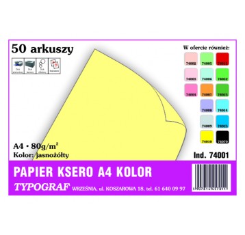 Papier kolorowy ksero Typograf A4 80 g/m2 jasnożółty