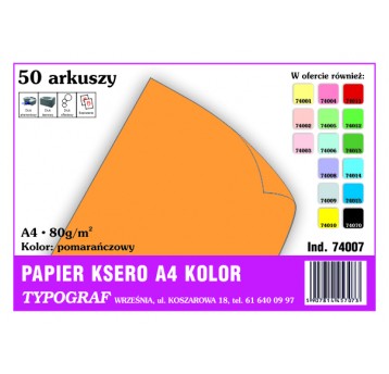 Papier kolorowy ksero Typograf A4 80 g/m2 pomarańczowy