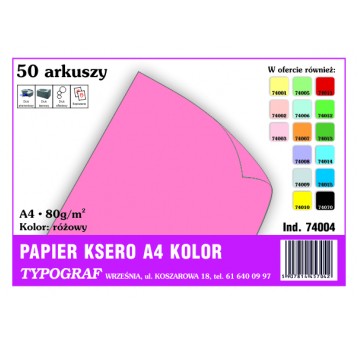 Papier kolorowy ksero Typograf A4 80 g/m2 różowy