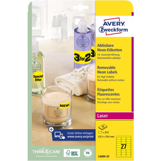 • Produkcja etykiet Avery Zweckform jest neutralna pod względem emisji CO2 (certyfikat Focus Future) i zgodna ze standardem ISO14001, który pomaga zminimalizować negatywne czynniki oddziałujące na środowisko naturalne.
