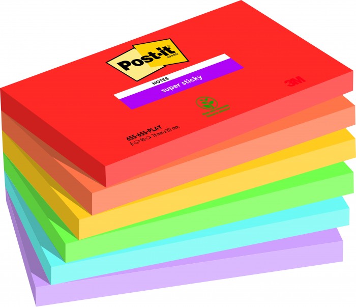 Kolorowe karteczki samoprzylepne Post-it® Super Sticky to innowacyjne rozwiązanie na codzienne zarządzanie zadaniami i priorytetami. Dzięki kolorom świetnie się wyróżniają, dzięki Super Sticky trzymają się w każdym miejscu.