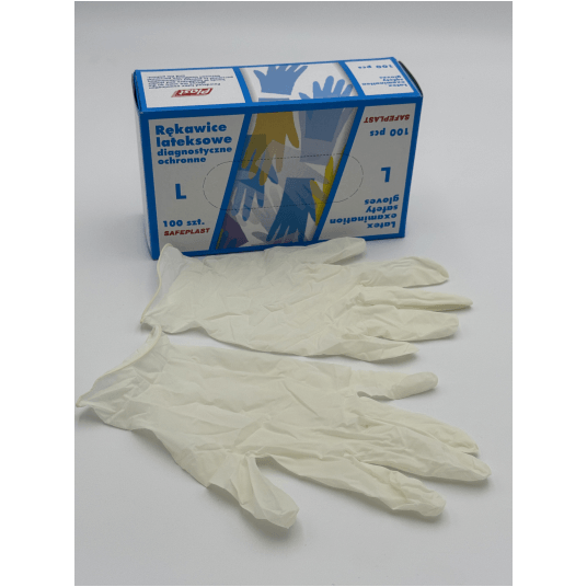 Rękawice lateksowe wykonane z naturalnej gumy lateksowej w r. S.