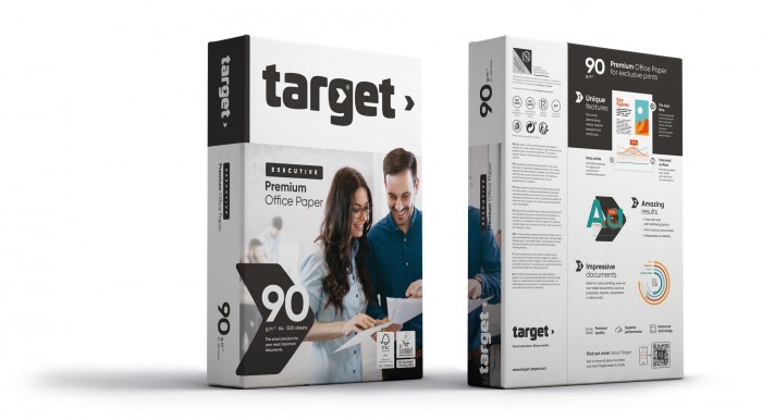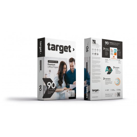 Target Executive 90 g/m2 zapewnia wyjątkową intensywność kolorów, nawet w druku dwustronnym. Doskonały kontrast druku zapewniający wysoką jakość kolorowych dokumentów. Wyjątkowa białość, grubość i nieprzezroczystość papieru zapobiega powstawaniu efektu przebijania i marszczeniu się arkuszy, gwarantując jednocześnie precyzyjne odwzorowanie czcionki.