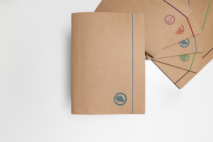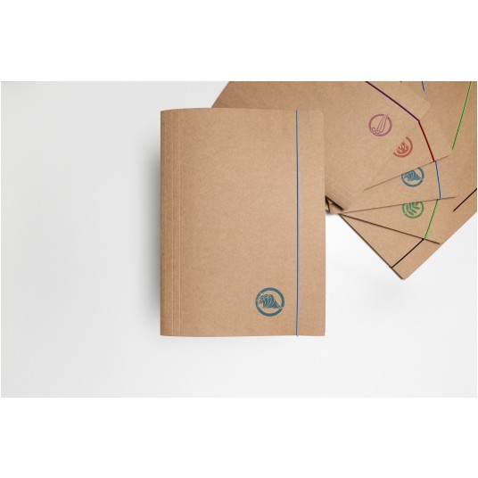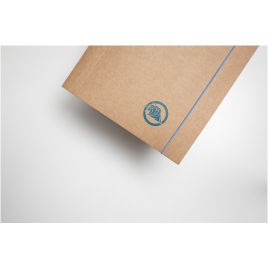 Teczka z gumką wykonana z ekologicznej jasno brązowej tektury typu Kraft podlegającej 100% recyklingowi. - dostępna w gramaturze 300g - wyposażona w gumkę w kolorze druku - posiada trzy wewnętrzne klapki zabezpieczające dokumenty przed wypadnięciem - format A4+ - okładka z motywem graficznym: powietrze