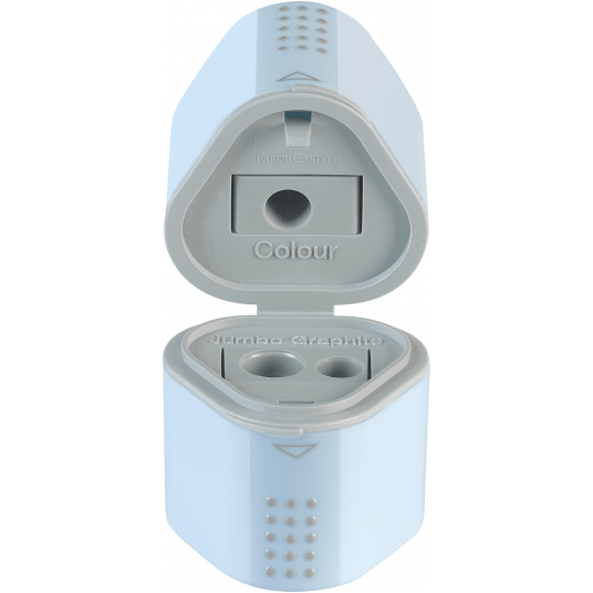 temperówka do ołówków standardowych, grubych typu jumbo oraz kredek o średnicy 8 i 11 mm odpowiednia do temperowania każdego kształtu ołówka / kredki posiada pojemnik na ostrużyny po obu stronach wyposażona w specjalną, miękką strefę uchwytu GRIP