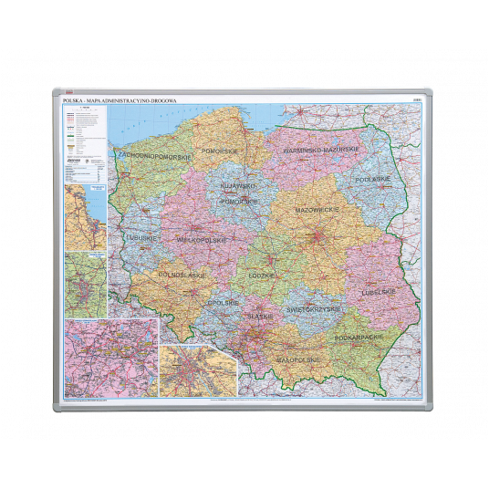 - wysokiej jakości, wyjątkowo precyzyjna mapa Polski, na elastycznej płycie (możliwość używania pinezek)