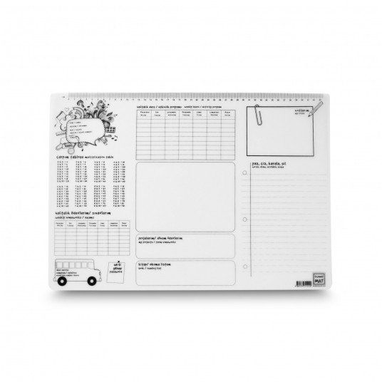 - flamastry zmywają się po umieszczeniu maty pod bieżącą wodą lub przy użyciu mokrej ściereczki, dzięki czemu produkt może być używany wielokrotnie