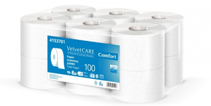 Papier toaletowy "JUMBO" 100% celuloza Papier 2 warstwowy Wysokość rolki: 92 mm Średnica rolki: 180 mm Pasujący podajnik VLP-5600025 Ilość listków na rolce: 800 Kolor: biały