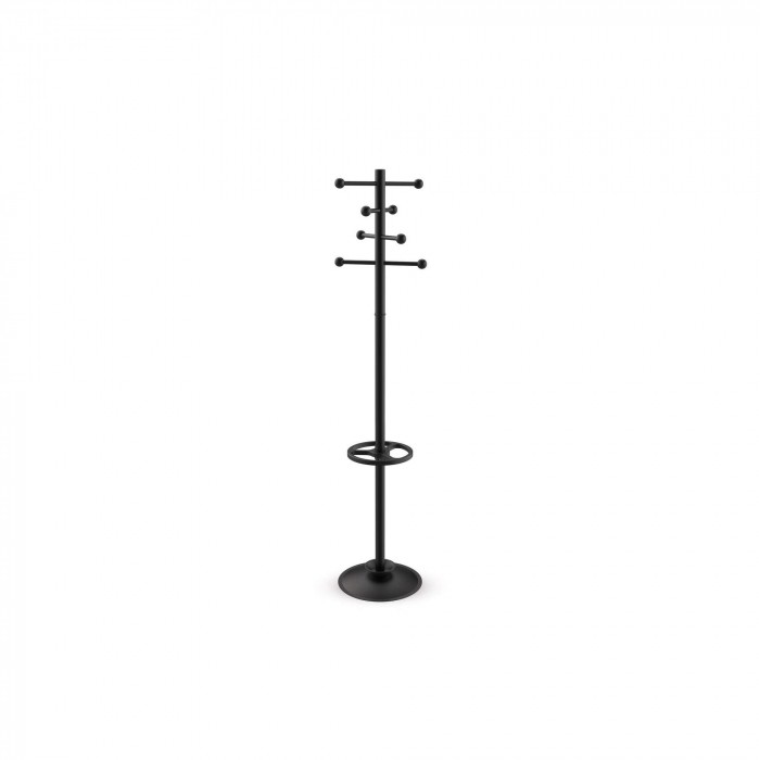 Wieszak podłogowy MAULsaphir w kolorze czarnym. Doskonałe połączenie wysokiej jakości, funkcjonalności i eleganckiego designu. Ten nowoczesny, minimalistyczny produkt doskonale wpasuje się w każde wnętrze. Solidna stalowa podstawa zapewnia stabilność i trwałość, gwarantując bezpieczeństwo i wygodę użytkowania. Wieszak wyposażony jest w 8 wytrzymałych, rozsuniętych drążków na ubrania, dla optymalnej przestrzeni na różne elementy garderoby. Dodatkowo posiada stojak na parasole z tacką ociekową, chroniący podłogę przed wilgocią. Wykonany z wysokiej jakości metalu i tworzywa ABS - zapewnia wyjątkową trwałość i odporność na codzienne użytkowanie. Doskonale sprawdzi się w biurach, korytarzach, salach konferencyjnych oraz innych pomieszczeniach. Łatwy montaż – wszystkie niezbędne narzędzia są dołączone, a sam proces składania zajmuje zaledwie kilka minut. Gwarancja 2 lata.