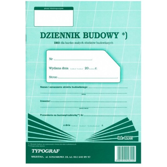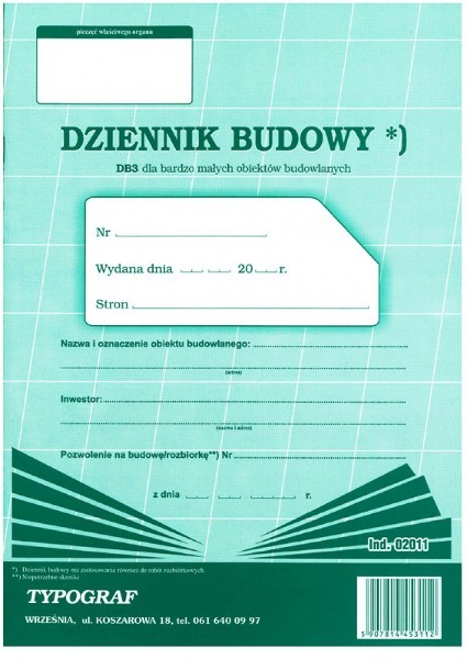 Dziennik budowy DB3 dla bardzo małych obiektów bud