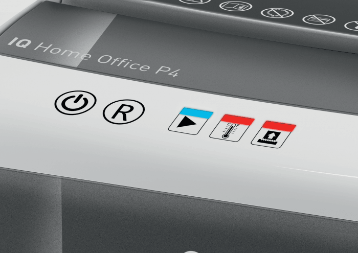 - technologia zapobiegania zacięciom zapewnia bezproblemową pracę niszczarki - urządzenie zatrzymuje się automatycznie i cofa papier, jeżeli w podajniku umieszczonych zostało zbyt wiele arkuszy