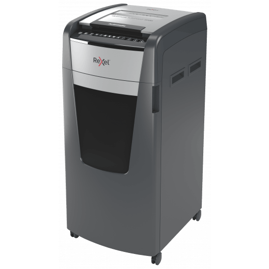 - jednorazowo niszczy automatycznie do 600 kartek A4 (80 gsm), tnąc arkusze na mikrościnki (o wymiarach 2 x 15 mm), co zapewnia poziom bezpieczeństwa P-5